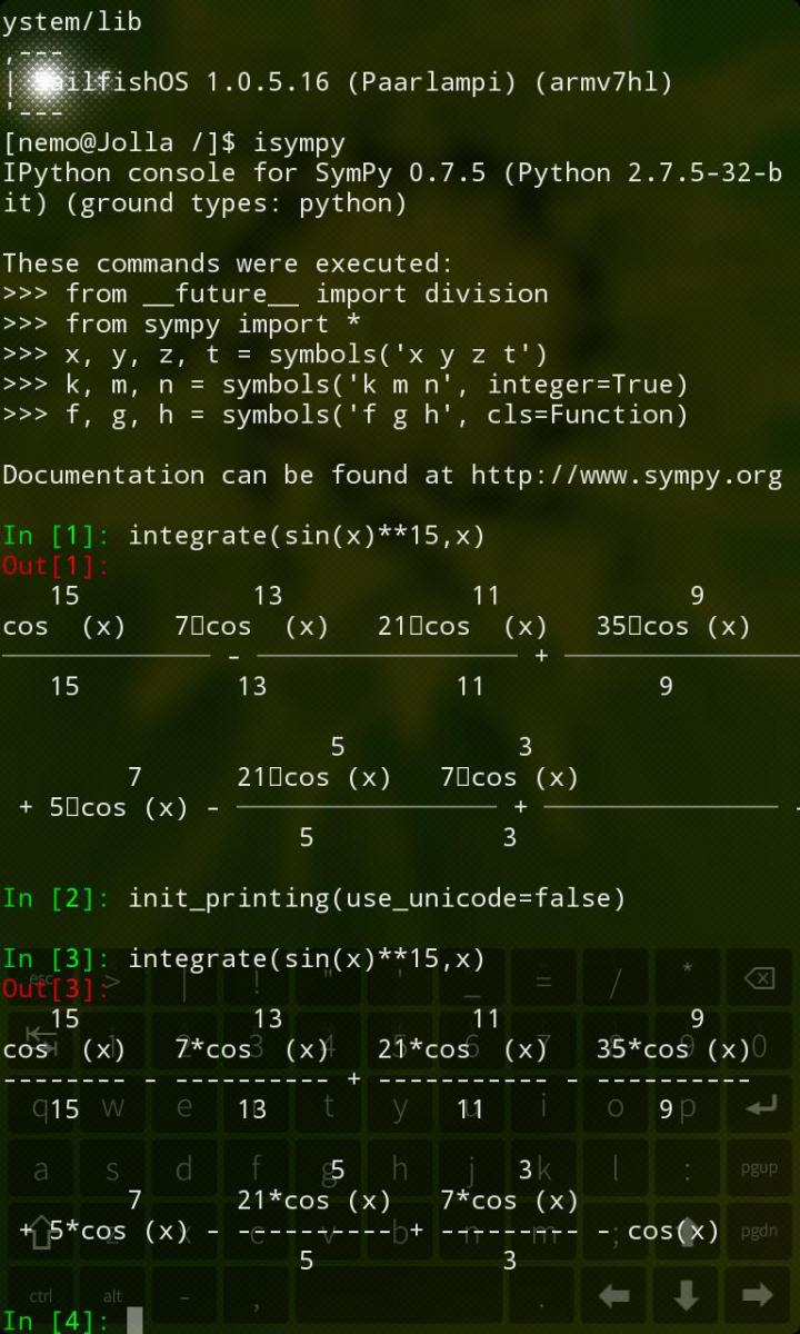 For interactive use of SymPy, it is recommended to install IPython for Sailfish OS.