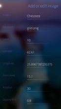 With the app you can patch and scale an image on the map. With an app you can add temporary, future or private maps on OpenStreet map and move on theose maps.