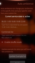 In app - write your prefered hours separated by one space and write the name of your list. Choose shuffle mode if you want random order of your ambiences and press Apply.