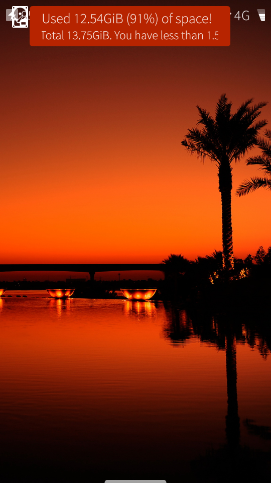 And if "used" is more than 12.25GiB or exactly 13.75GiB or more than 89%, that mean you have less than 1.5GiB of space or don't have at all, you will get notification (audio, led, lock & event screens).