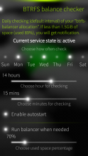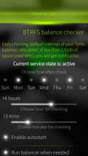 Similar to "BTRFS balance checker" app, but without icon and have setting in Setting app (see screenshots).