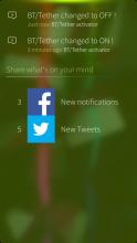 * If in this time period your phone connected to any device (your car system), app continue to check every 2 min if BT connection exist. And when your Jolla disconnected from another device (your car system), app will switch BT & Tethering to OFF.