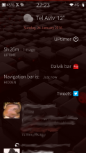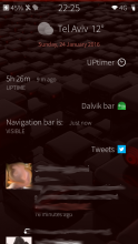 P.S.#2: Yes, I know and I have it there already. But it requires significantly more swipes and ticks to trigger the toggle; this and the fact that toggling the Android bar's visibility has become a regular operation for me, is why I love Dalvik bar so much. :)