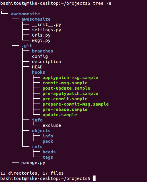 indented listing of files, which is colorized ala dircolors if the