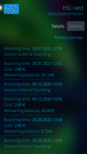 Application for reading HSL (Helsinki Region Transport) and Tampere (Nysse) travel cards.