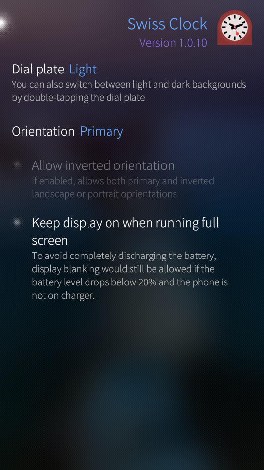 This app equivalent to Swiss Clock from the Jolla store except that this one has settings.