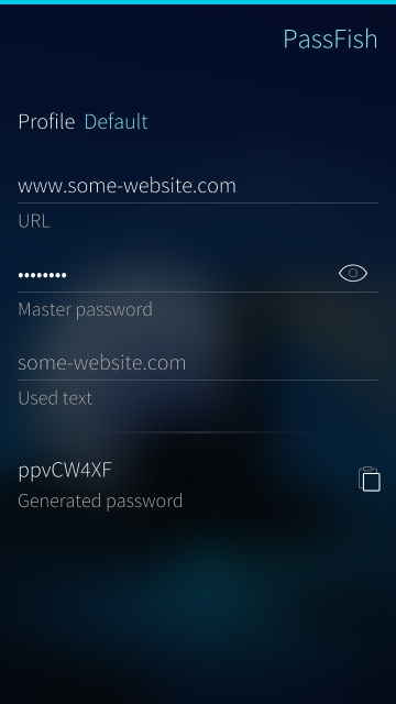 PassFish is a reimplementation of PasswordMaker Pro for Sailfish OS, that aims to be mostly compatible to the JavaScript edition.
