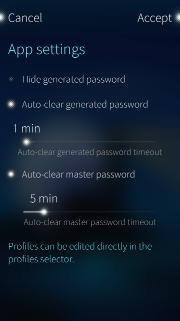 The PassFish app offers support for multiple stored password-generation profiles which mostly mirror the settings available in PasswordMaker Pro. The UI of the main screen also closely follows the original program. Users of the PasswordMaker Pro Android App will likely find their way around PassFish with ease.