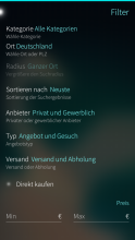 Simple App für Kleinanzeigen.de. Es sind die Suche mit einigen Filtern, eine Merkliste ohne Aktualisierung und Anzeigendetails verfügbar.