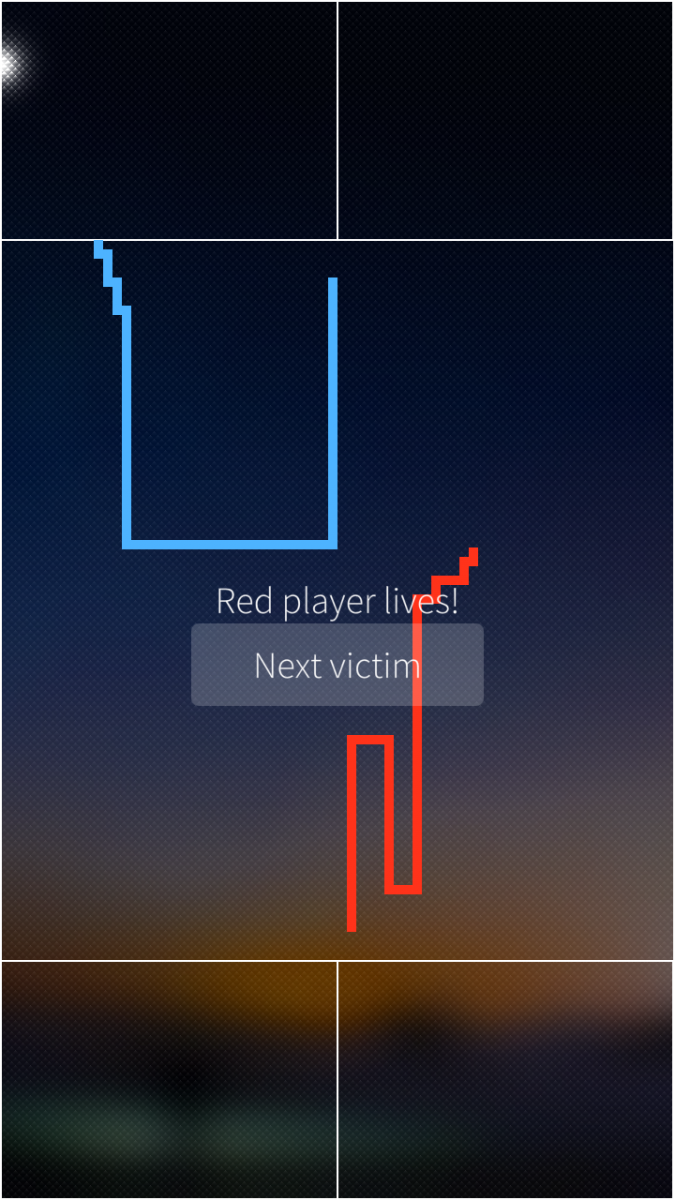 2-player game based on tron. The button areas are just suggestions to not obscure opponents vision, any tap on your side of the screen will register as a turn based on whether it's left or right of the centre. Thickness setting should help with higher dpi devices, base settings work well on jolla C, let me know if we need more options, but can't guarantee it will work for very high-dpi devices as collision checking with getImageData is already choking the whole thing, might need a rewrite in c++ or sdl2