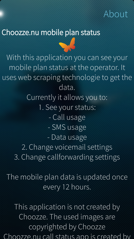 The application is for the free mobile operator Choozze.nu. It is a Dutch company.
