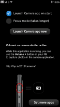 Use the Volume+ hardware key on your device as shutter button in the Camera application. You can easily activate and deactivate this feature by opening and closing the application.