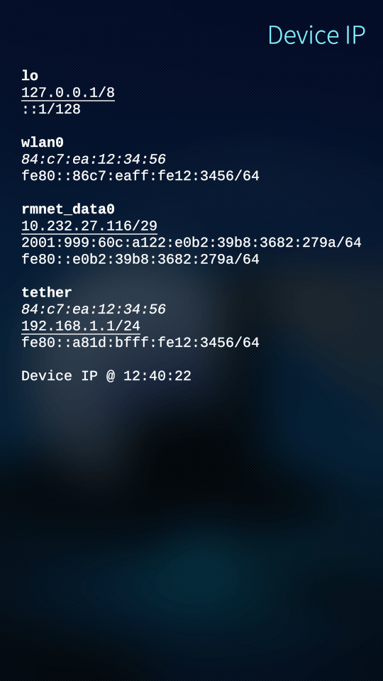 Both IPv4 and IPv6 addresses are shown (whenever assigned).