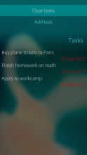 - Add a TODO with a deadline - List all your TODOs - Remove TODOs (by long press) - Clear all the TODOs