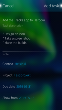 The Tracks application allows you to manage actions in a Tracks GTD todo application (http://www.getontracks.org/) with your Sailfish device. The application includes most basic action management features.